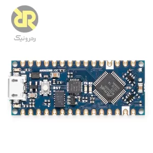 برد آردوینو Arduino Nano 33 BLE, برپایه میکروکنترلر nRF52840, با حافظه فلش 1 مگابایت و سرعت کلاک 64 مگاهرتز, با 14 پایه دیجیتال و 8 پایه آنالوگ و پشتیبانی از پروتکل های UART ,I2C ,SPI و اتصال بی سیم بلوتوث